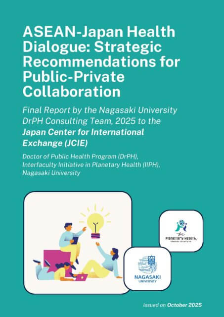 2025年11月05日 Pick UpニュースDrPHニュース 2025年のDrPH短期実務研修(東京)の最終報告書を公開します 長崎大学プラネタリーヘルス学環の博士課程学生チームは、日本国際交流センター(JCIE)との共同プロジェクトを通じて、ASEAN-日本地域における共通の健康課題を分析し、戦略的な対話の方向性を提言しました。この調査では、非感染性疾患(NCDs)やデジタルヘルスに着目し、地域の公衆衛生協力を推進するための提言をまとめました。 「DrPHプログラム進学説明会2025」を開催します。 Category All Pick Up ニュース 入試情報 イベント DrPHニュース Archive 2025年11月 2025年10月 2025年1月 2024年12月 2024年11月 2024年10月 2024年6月 2024年2月 2024年1月 2023年11月 2023年7月 2023年6月 2023年5月 2023年4月 2023年3月 2023年2月 2023年1月 2022年11月 2022年8月 2022年5月 2022年4月 2022年3月 2022年2月 2022年1月 2021年12月